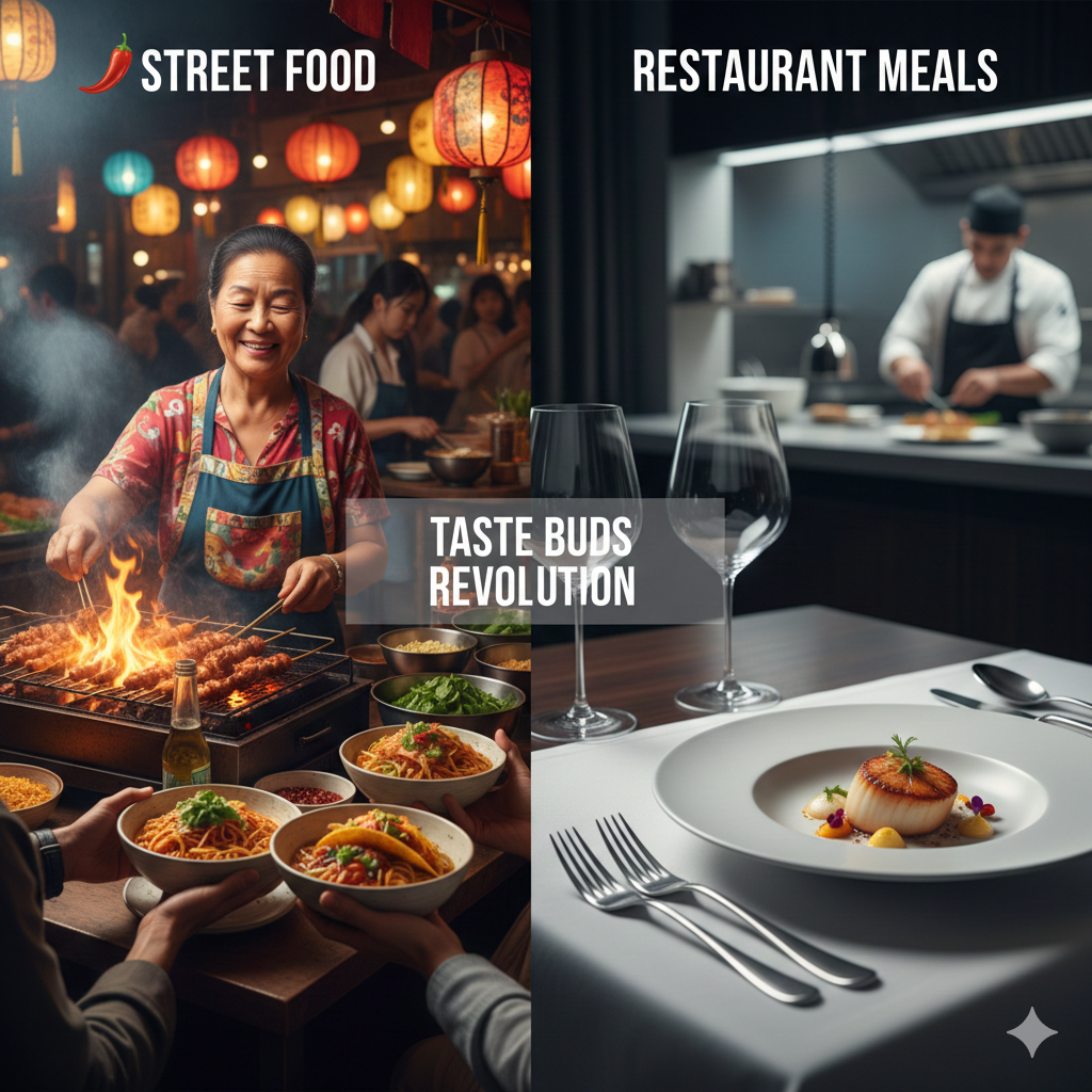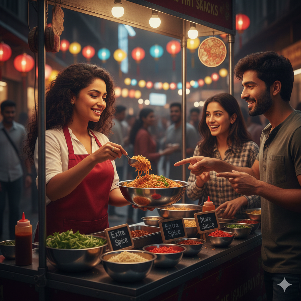 Street food vendors make the same dishes every day, so they know exactly how much spice and seasoning to add. Many of them use old, traditional recipes that have been followed for years.That’s why street food has strong, real, and bold flavors. Whether it’s chaat, kebabs, momos, noodles, ice gola, vada pav, pani puri, or roasted corn—every item has its own special taste that makes people come back.Restaurants sometimes reduce spices to suit everyone, which can make the food less flavorful. But street food is made for local taste, so it stays more authentic, spicy, and full of flavor.